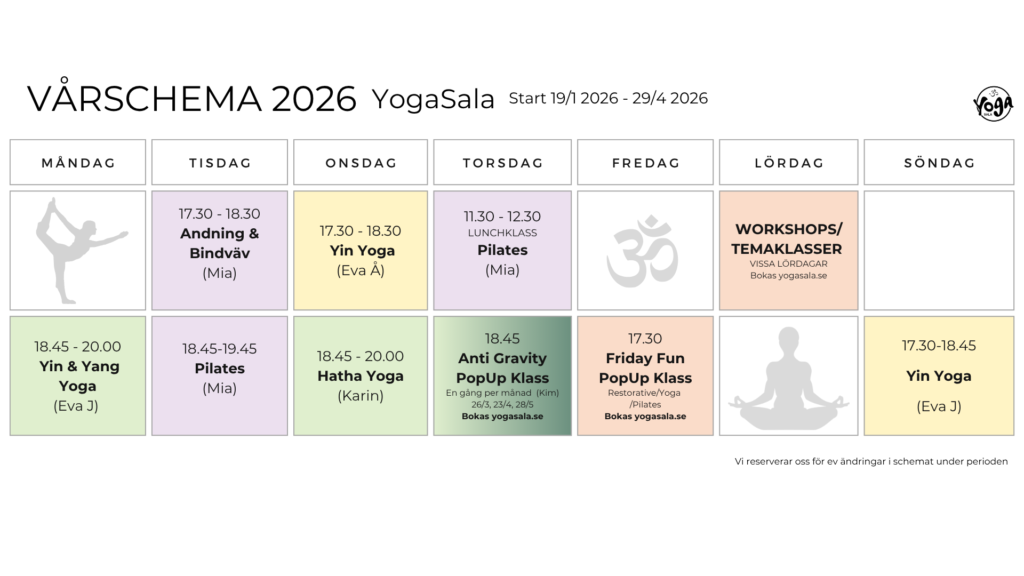 Undantaget är PopUpklasser Friday Fun , Anti Gravity och kurser/workshops som du bokar via YogaSala.se