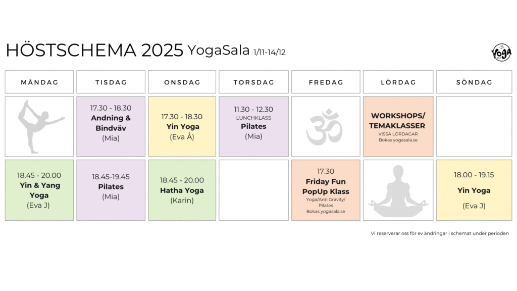 Höstschemat är i gång! Drop in på alla pass utom Friday Fun, Anti Gravity och workshops som bokas via hemsidan.